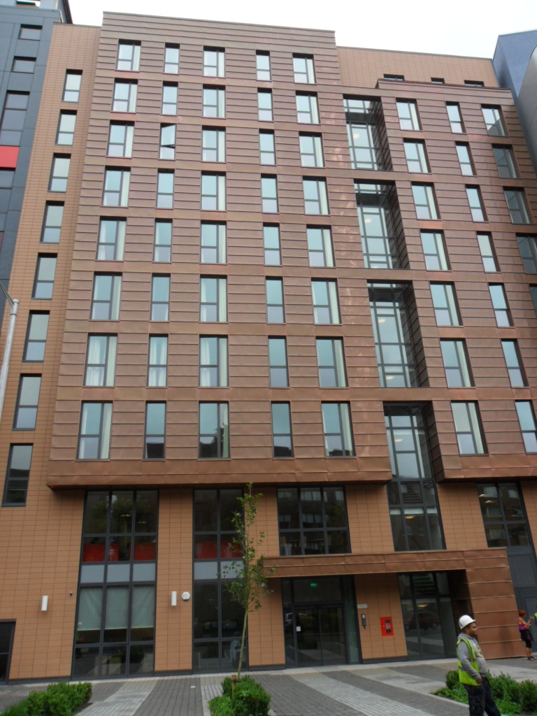 The residential part of Alexandra House consists of 161 modules each weighing 6 tons; making up the top eight floors of the building, these were brought ready-made from the factory, completely fitted out with white goods, kitchens and furniture, so that 80 per cent of the build was assembled on-site in three weeks.