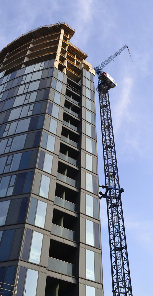 The IYLO BUILDING has awoken from its slumbers… The construction crane is back and builders in hi-viz jackets, like worker ants, are climbing all over it. But the oft neglected, unfinished tower in the middle of a suburban roundabout has not been fooled into thinking it will be providing “city living” for any well-off people any time soon
