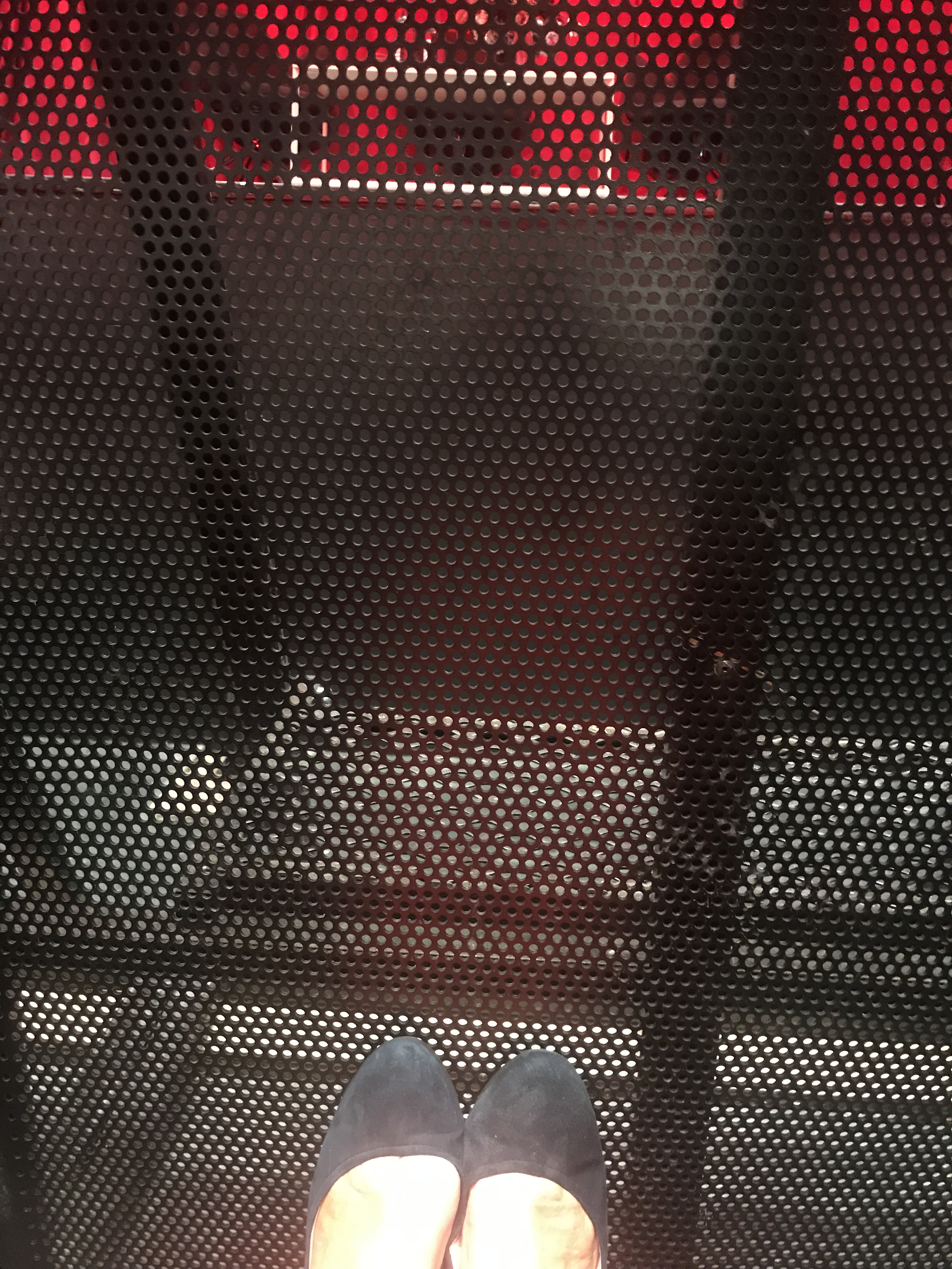 The photograph, reproduced above, shows a metal grate between the auditorium and stage, which would pretty much block the view of the guest of honour and her interviewer completely.